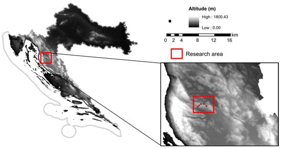 Map of the Republic of Croatia with research area marked.