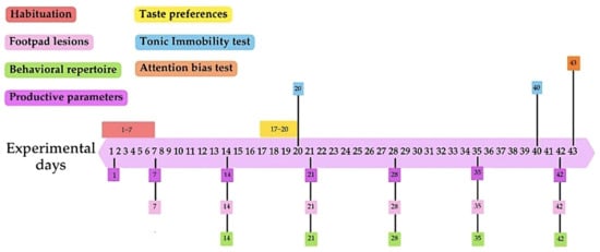 - Butterworth, A.; Arnould, C.; Fiks van Niekerk, T.; Veissier, I.; Keeling, L.; van Overbeke, G.; Bedaux, V. Welfare Quality® Assessment for Poultry (Broilers, Laying Hens); Welfare Quality® Consortium: Lelystad, The Netherlands, 2009. [Google Scholar]