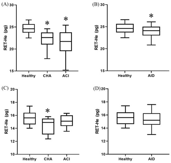 | Dogs (n = 969) | RET-He (pg) | 21.1 | 27.2 | 20.7–21.3 | 27.1–27.4 |