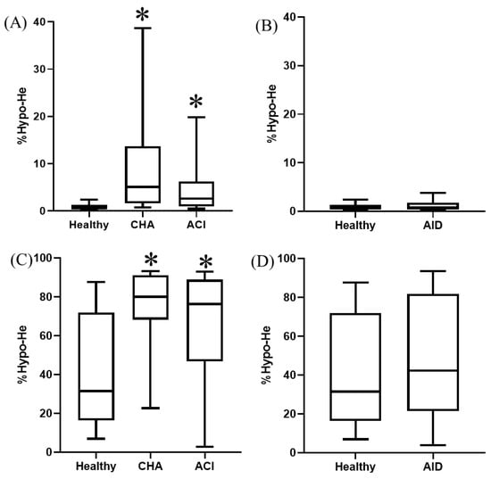 3.4. %Hypo-He in Dogs and Cats with AID, CHA, and ACI