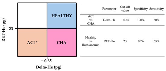 - Weimann, A.; Cremer, M.; Hernáiz-Driever, P.; Zimmermann, M. Delta-He, Ret-He and a new diagnostic plot for differential diagnosis and therapy monitoring of patients suffering from various disease-specific types of anemia. Clin. Lab. 2016, 62, 667–677. [Google Scholar] [CrossRef]