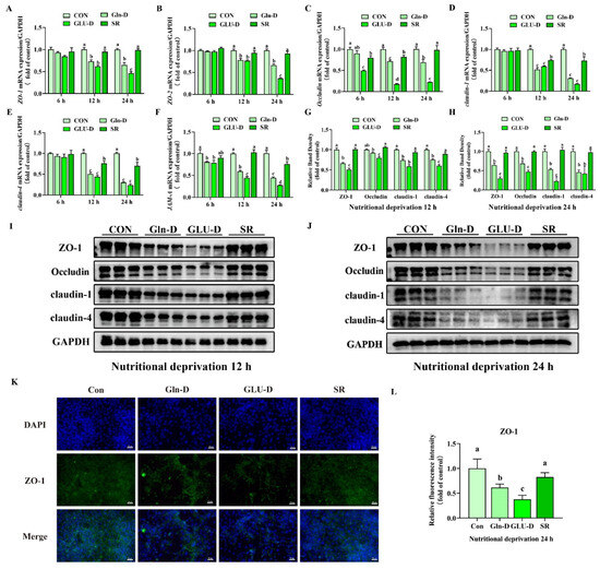APA StyleYue, Z., Wang, J., Hu, R., Peng, Q., Guo, H., Zou, H., Xiao, J., Jiang, Y., & Wang, Z. (2024). Effects of Glutamine or Glucose Deprivation on Inflammation and Tight Junction Disruption in Yak Rumen Epithelial Cells. Animals, 14(22), 3232. https://doi.org/10.3390/ani14223232