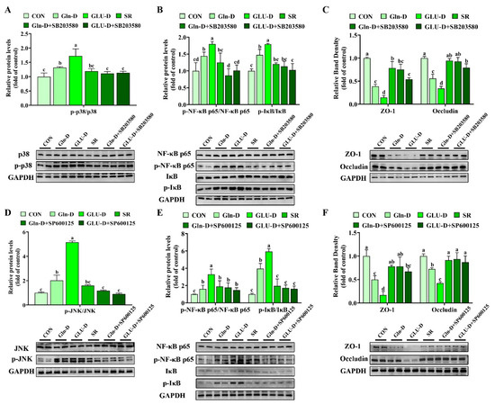 3.8. Gln-D or GLU-D Induced Inflammation and Damaged Tight Junction in YRECs Through the p38 MAPK/JNK Signaling Pathway