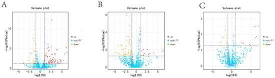 The DEMs in ovary tissues of Wanxi White Geese in different periods: (A) KL vs. CL; (B) CL vs. XL; (C) KL vs. XL.