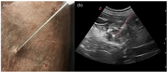 Clinical, biochemical, and ultrasonographic follow-up examinations were conducted one and six months after the procedure. Operators (M.D.A, P.G.O., T.F.) with several years of experience in ultrasonography and ultrasound-guided procedures performed all the ultrasonographic examinations before, during, and after the procedure. After each RFA procedure, the patients were discharged with anti-inflammatory (prednisolone 0.5 mg/kg, twice a day, orally for one week followed by 0.25 mg/kg, twice a day, orally for five days) and antibiotic medication (amoxicillin 12.5 mg/kg, twice a day, orally for one week). Moreover, to reduce fibrinolytic activation and minimize the perioperative bleeding risk, one week before and three days after the procedure, all of the dogs underwent treatment with an oral fibrinolysis inhibitor (tranexamic acid 10 mg/kg twice a day) [54,55,56].