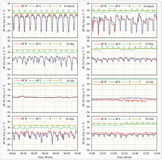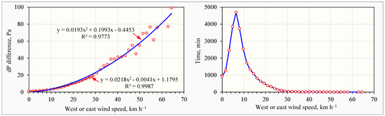 | dP Range, Pa | West Wall | East Wall | Average Time, % | ||