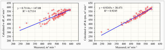 | Differential Pressure, Pa | Speed, rpm | Ventilation, m3 min−1 | Efficiency, m3 W−1 |