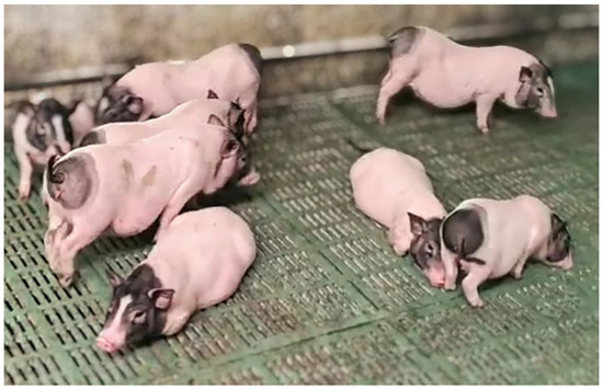 The Bamaxiang pig is one of the most recognized indigenous purebred pig breeds in China. It is primarily found in Bama, Bailin, Natao, and Yantong counties in Guangxi province. This breed is known for its small body size and distinctive black coat with two ends (Figure 1). By 2005, the number of commercial Bamaxiang sows exceeded 100,000 [21]. Notably, the breed exhibits earlier sexual maturity, superior meat quality, and enhanced adaptability and disease resistance compared to other pig breeds [22]. Besides being a significant indigenous breed for the local pork market, the Bamaxiang pig also serves as an excellent animal model for biomedical research, demonstrating considerable potential in organ transplantation [23]. In recent years, Bamaxiang pigs have become popular as pet pigs, becoming beloved companions for people to enjoy and appreciate. However, there have been no reports of Blastocystis spp. and E. bieneusi infections in Bamaxiang pigs. Therefore, this study investigated the occurrence, genotypic distributions, and molecular characteristics of Blastocystis spp. and E. bieneusi in Bamaxiang pigs of different age groups across three large-scale pig farms in Guangxi Province, China.