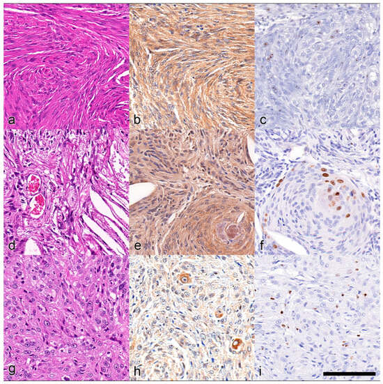 - Janssen, J.; Oevermann, A.; Walter, I.; Tichy, A.; Kummer, S.; Gradner, G. Osteopontin and Ki-67 expression in World Health Organization graded canine meningioma. J. Comp. Pathol. 2023, 201, 41–48. [Google Scholar] [CrossRef]