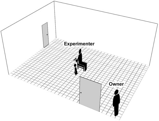 Dogs are not only the oldest domesticated species (e.g., []), but they also show a near-perfect adaptation to the anthropogenic environment, which is considered as being the natural habitat for dogs []. Consequently, the vast majority of the world’s one billion-strong dog population [] habitually and continuously lives together with humans, whether belonging to free-ranging dogs [] or representing a companion animal []. One of the main characteristics of dogs is a complex system of dependence on humans, both with regard to the procurement of vital resources [] and emotional–behavioural bonding [] that creates an asymmetrical relationship between the dog and usually one specific person (who is usually referred to as the owner/main caretaker). There are several specific socio-cognitive traits that ensure and maintain this close asymmetric tie between the dog and its focal person; among these are dog–owner attachment [], mutual emotional and communicative understanding [], and reliance on human assistance in difficult situations [,,,], which is of primary importance here.