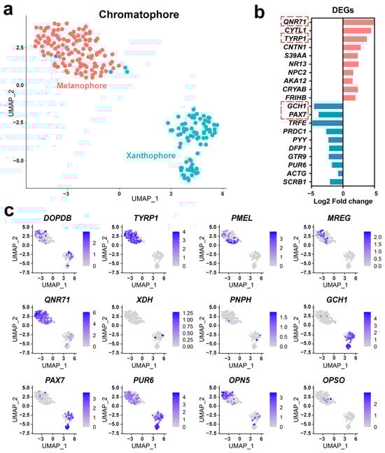 - Liao, Y.; Shi, H.; Han, T.; Jiang, D.; Lu, B.; Shi, G.; Zhu, C.; Li, G. Pigment identification and gene expression analysis during erythrophore development in spotted Scat (Scatophagus argus) Larvae. Int. J. Mol. Sci. 2023, 24, 15356. [Google Scholar] [CrossRef]
