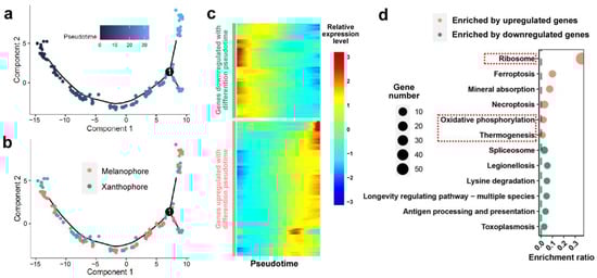 - Zhu, W.; Liu, L.; Wang, X.; Gao, X.; Jiang, J.; Wang, B. Transcriptomics reveals the molecular processes of light-induced rapid darkening of the non-obligate cave dweller Oreolalax rhodostigmatus (Megophryidae, Anura) and their genetic basis of pigmentation strategy. BMC Genom. 2018, 19, 422. [Google Scholar] [CrossRef] [PubMed]