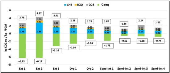 - Buratti, C.; Fantozzi, F.; Barbanera, M.; Lascaro, E.; Chiorri, M.; Cecchini, L. Carbon Footprint of Conventional and Organic Beef Production Systems: An Italian Case Study. Sci. Total Environ. 2017, 576, 129–137. [Google Scholar] [CrossRef]