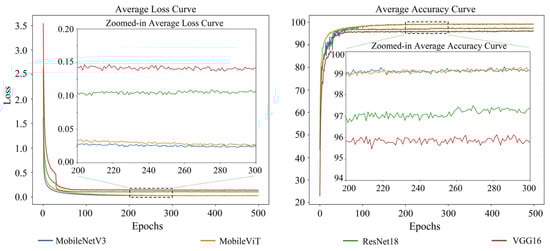 27] performed well in image classification tasks and the ImageNet Large Scale Visual Recognition Competition (ILSVRC) 2014. Despite its relatively large model size, its simple structure makes it easy to train and understand, leading to its widespread application in various computer vision tasks. In summary, MobileNetV3 and MobileViT focus on lightweight design and efficient performance on mobile devices; ResNet18 is widely adopted in practical applications due to its small model size and good generalization ability; and VGG16 is renowned for its simple and understandable structure with good performance. Each of these four models has its strengths and is representative in the field of computer vision, enabling a trustworthy evaluation of the ability of different appearances.