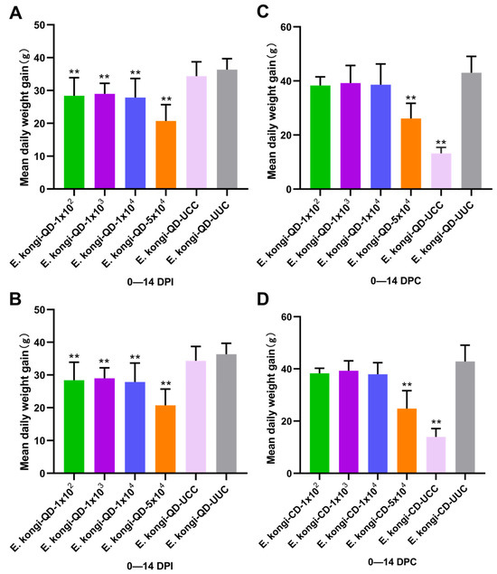 3.2. Comparison of Pathogenicity and Immunogenicity of E. kongi-QD and E. kongi-CD