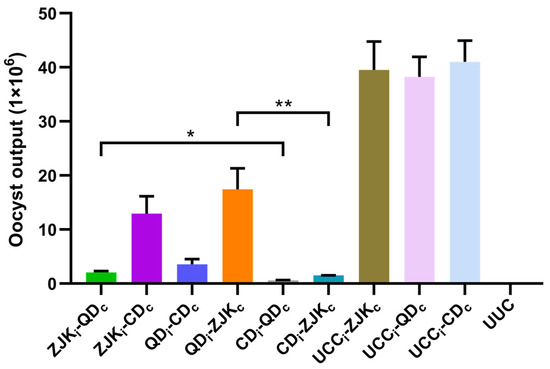 - Tao, G.; Wang, Y.; Li, C.; Gu, X.; Cui, P.; Fang, S.; Suo, X.; Liu, X. High pathogenicity and strong immunogenicity of a Chinese isolate of Eimeria magna Pérard, 1925. Parasitol. Int. 2017, 66, 207–209. [Google Scholar] [CrossRef]