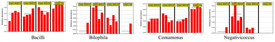 Amplicons were generated from 20 to 30 ng of DNA, targeting the V3 and V4 hypervariable regions of bacterial 16S rDNA for subsequent taxonomic analysis. A set of primers was designed to target conserved areas near the V3 and V4 hypervariable regions of the 16S rDNA of bacteria and archaea (forward: 5′-CCT ACG GRR BGC ASC AGK VRV GAA T-3′; reverse: 5′-GGA CTA CNV GGG TWT CTA ATC C-3′). Tagged adaptors were added to the termini of the 16S rDNA amplicons to prepare tagged libraries for downstream NGS sequencing on the Illumina MiSeq sequencer (Illumina, San Diego, CA, USA). PCR reactions were initiated in triplicate using a 25 µL mixture consisting of 2 µL NTP, 2.5 µL Trans Start Buffer, 20 ng DNA template, and 1 µL primer.