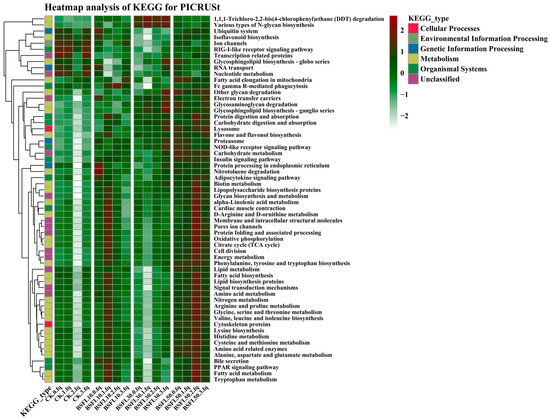 PICRUSt (Phylogenetic Investigation of Communities by Reconstructing the Observed State) was employed to predict the functional properties of microbial communities by analyzing the genetic composition of microorganisms [42]. The KEGG database and operational taxonomic units (OTUs) were used to filter collected reads according to a Greengenes reference taxonomy (Greengenes 13.5).