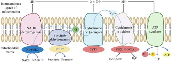 By mapping DEPs and DEMs associated with energy metabolism to KEGG, pathways such as oxidative phosphorylation, purine metabolism, unsaturated fatty acids synthesis, ABC transporters and peroxisomes were enriched. The DEPs and DEMs associated with oxidative phosphorylation are shown in Figure 6. Since sperm motility is positively correlated with its metabolic level, both DEPs and DEMs determined the boar’s X/Y sperm motility performance.