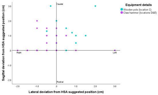 Where impact site was able to be examined, heads were measured for deviation from the HSA’s suggested position for stunning/slaughter (Figure 5), with all impacts caudal to the suggested position.