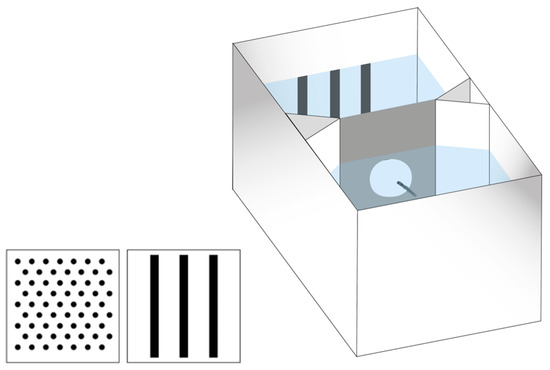 Santacà and colleagues [27] have recently developed a discrimination learning procedure based on an appetitive operant paradigm that can be administered to larval zebrafish in the first week after hatching. The paradigm is very similar to that employed in research with rodents, primates, and adult zebrafish, and has the potential to be used for measuring a variety of cognitive functions, including visual perception, learning and memory, and executive functions [27,28,29]. Larvae are trained for five days (from 8 dpf to 12 dpf) with two reinforcement tests per day in an apparatus consisting of two chambers connected by a small hole (10 mm in diameter). At the beginning of each trial, the two stimuli to be discriminated are introduced, one in each chamber, and after a delay, food was administered in the chamber containing the stimulus to be reinforced. The degree of learning was assessed prior to reward administration by measuring the percentage of time the larvae spent in the chamber containing the reinforced stimulus during the interval between stimulus introduction and food delivery. In this paradigm, the function of the narrow passage is to prevent food particles from passing into the chamber containing the unreinforced stimulus and to minimize the diffusion of food odor, which could otherwise act as secondary reinforcement with the incorrect stimulus.
