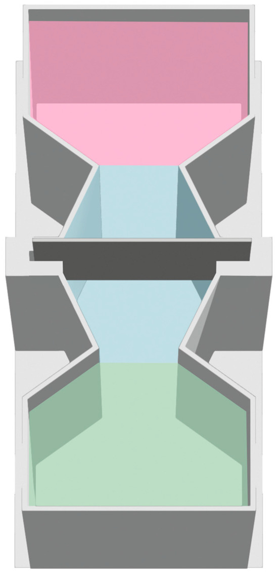 We used the same equipment employed in the previous study [20] which was transferred from the University of Padova. Two different apparatuses were used. For the familiarization phase and the initial group training, we used an hourglass-shaped tank (12 × 4.8 cm and 4 cm high) consisting of two identical compartments separated by a grey plastic panel (3 × 3.2 cm) with a central hole (1 cm Ø) allowing larvae to move between compartments (Figure 1). Individual training was conducted in a similar but smaller tank (7 × 4 cm and 4 cm high) filled with 3.5 cm of fish water 1×. To prevent the subjects from seeing their surroundings, the training apparatuses were placed in a white plastic box (containing four tanks for collective training or twelve for the individual training) and lit by two led strips placed symmetrically along the major axis of the plastic boxes. The room was kept in semi-darkness.