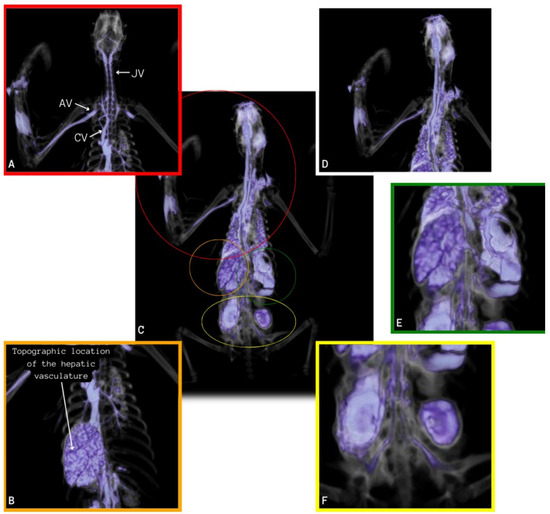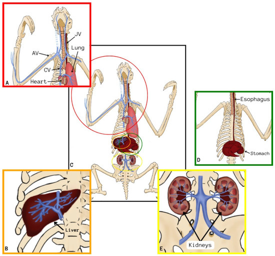 - Nascimento, N.E.O.; Amorim, M.J.A.A.L.; Albuquerque, P.V.; Miranda, M.E.L.C.; Alcântara, S.F.; Andrade, G.P.; Mesquita, E.P.; Bittencourt, T.Q.M.; Amorim Júnior, A.A. Identification of the tributary branches of the hepatic portal vein in the common sloth, Bradypus variegatus Schinz, 1825 (Pilosa: Bradypodidae). Arq. Bras. Med. Vet. Zootec. 2022, 74, 825–832. [Google Scholar] [CrossRef]