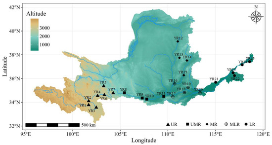 The Yellow River originates in Qinghai Province, China, and its basin spans from the west to the east, with complex and varied topography and landscape in different regions. The upstream area consists of high plateaus and mountain ranges, the middle reaches are dominated by hills and basins, and the downstream area is characterized by plains. Vegetation types, climate characteristics, and land use types vary from region to region, spanning arid, semi-arid, and semi-humid climate zones from northwest to southeast; precipitation and distribution are also uneven, with the upstream area receiving less precipitation, mainly in summer, while the middle and downstream areas of the basin are relatively rich in precipitation, concentrating in summer and autumn. Such complex and variable geographical characteristics pose a serious challenge to the survival and adaptation of animals [17,18].