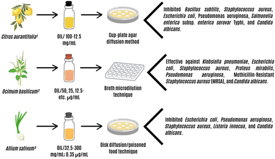 - Yasin, G.; Jasim, S.A.; Mahmudiono, T.; Al-Shawi, S.G.; Shichiyakh, R.A.; Shoukat, S.; Kadhim, A.J.; Iswanto, A.H.; Saleh, M.M.; Fenjan, M. Investigating the effect of garlic (Allium sativum) essential oil on foodborne pathogenic microorganisms. Food Sci. Technol. 2022, 42, e03822. [Google Scholar] [CrossRef]