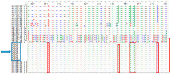 2.3. Sequencing of FeLV-Positive PCR Amplicons and Their Phylogenetic Analysis