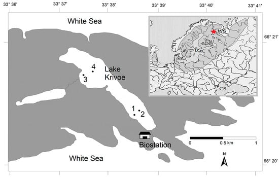 - Gubelit, J.I.; Nikulina, V.N. Algal community of Krivoye Lake (Northern Karelia) at present time. Biological Resources of the White Sea and Inland Waters of European North. In Proceedings of the XXVIII International Conference, 5–8 October 2009; KRC RAS: Petrozavodsk, Russian, 2009; pp. 167–171. (In Russian). [Google Scholar]