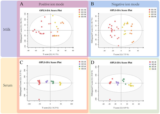 3.3. Metabolomics Multivariate Analysis of Serum and Milk