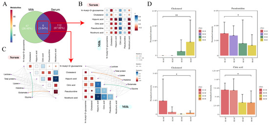 3.6. Interaction Analysis of Serum and Milk Metabolites