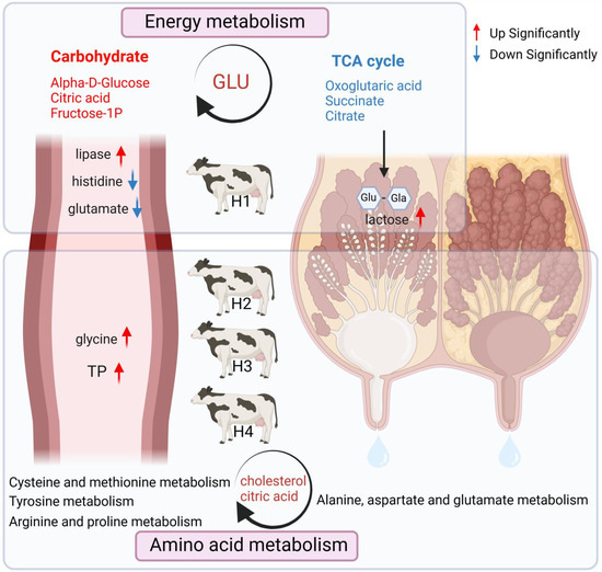 - Sun, H.Z.; Shi, K.; Wu, X.H.; Xue, M.Y.; Wei, Z.H.; Liu, J.X.; Liu, H.Y. Lactation-related metabolic mechanism investigated based on mammary gland metabolomics and 4 biofluids’ metabolomics relationships in dairy cows. BMC Genom. 2017, 18, 936. [Google Scholar] [CrossRef]