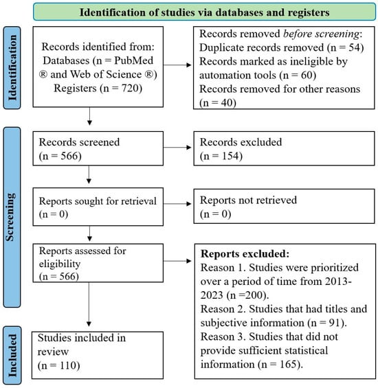 Duplicate records and records marked as ineligible by automation tools were eliminated. Studies over a time period from 2013 to 2023 were prioritized; studies that had titles and subjective information and studies that did not provide sufficient statistical information were eliminated.