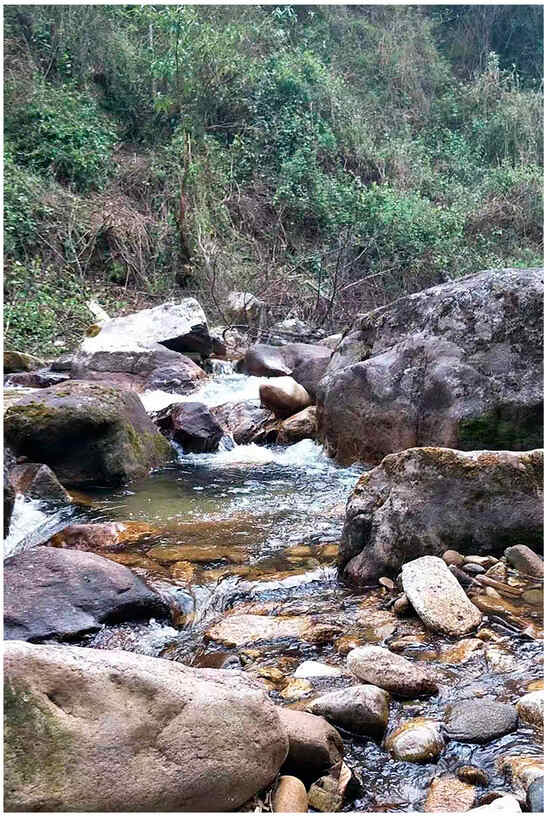 Habitat. All specimens of the new species were found on small branches or on the ground beside a stream at night, with forest and farmland nearby (Figure 6).