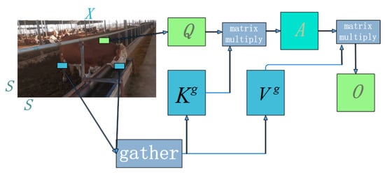 To efficiently handle non-overlapping regions dispersed across the feature map, the key-value pair tensors K and V are collected. Data is extracted and new data tensors Kg (as per Equation (11)) and Vg (as per Equation (12)) are generated using the gather ( , ) function. The final output feature map, denoted as O, is obtained through the attention mechanism.