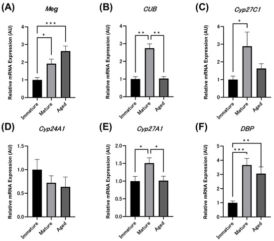3.4. Relative Expression Levels of Meg, CUB and Vitamin D Metabolism-Related Enzyme mRNAs in Immature Chicks and Laying Hens by qPCR