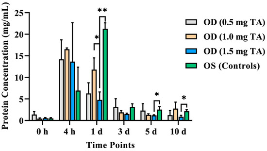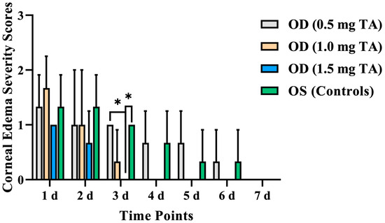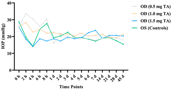 | OD (0.5 mg TA) (n = 6) | OD (1.0 mg TA) (n = 6) | OD (1.5 mg TA) (n = 6) | OS | |