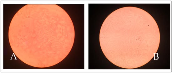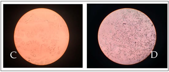 To quantitatively evaluate the tear film, we utilized the Schirmer Tear Test-1 (STT) Eickemeyer™, (Eickemeyer Veterinary Technology for Life Inc., Stratford, Ontario, Canada). Qualitative assessment, on the other hand, was performed using the TBUT test, Fluorescein Sodium Ophthalmic Strips U.S.PTM (Prótesis Hospitalarias S.A, Madrid, Spain), and the TFT. For the TFT, we collected tear samples from the lower conjunctival sac of both eyes using micro-hematocrit tubes (made of neutral glass by Vitrex Medical A/S, Herlev, Denmark). These tear samples were then allowed to dry on glass slides (provided by Knittel Glass, Braunschweig, Germany) for a duration of 10 min at a temperature range of 21–23 °C and relative humidity of 60–80%. Subsequently, we observed the slides under an optical microscope (Olympus CH20, Olympus Iberia S.A.U., Barcelona, Spain) at a magnification of 10X To categorize the fern patterns, we employed a grading scale developed by Williams and Hewitt [23], ranging from abundant and closely spaced ferns (grade I) to the absence of ferns (grade IV). Grades I and II were categorized as good quality-normal, while grades III and IV were classified as poor quality-abnormal (Figure 1).