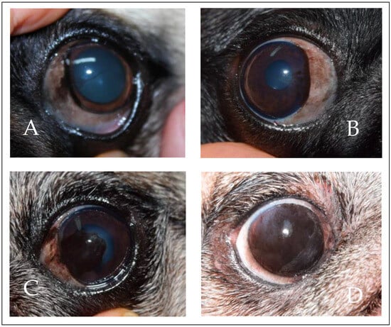 1. Labelle, A.L.; Dresser, C.B.; Hamor, R.E.; Allender, M.C.; Disney, J.L. Characteristics of, Prevalence of, and Risk Factors for Corneal Pigmentation (Pigmentary Keratopathy) in Pugs. J. Am. Vet. Med. Assoc. 2013, 243, 667–674. [Google Scholar] [CrossRef]