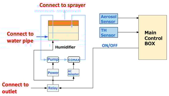 In the previous study by our research group, experiments on decreasing aerosols were conducted [18]. In an animal experimental facility infected with porcine saperovirus (PSV), porcine epidemic diarrhea virus (PEDV), and coliforms, an acidic water was sprayed weakly at 100 mL/min for 10 min, which was sprayed with 1000 ml of sterile phosphate saline solution. This reduced the rate of aerosol concentration compared to the no-spray condition.