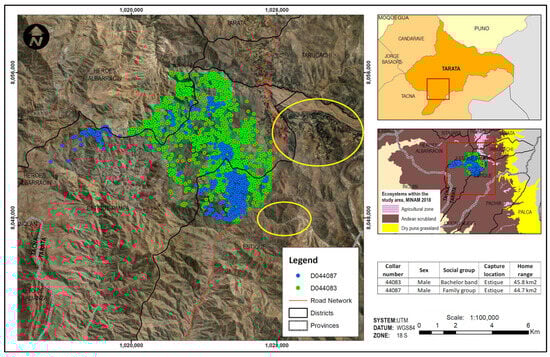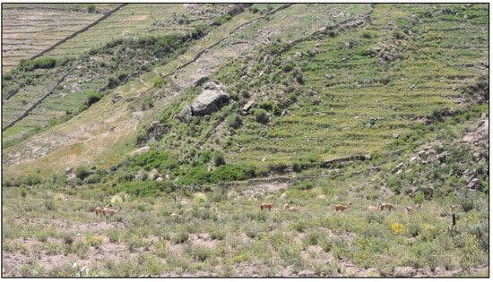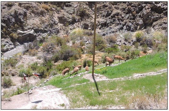 - Zeballos, H. Informe Final: Diagnóstico Situacional del Guanaco (Lama guanicoe) en la Zona Altoandina de la Región Tacna y su Plan de Conservación; Gobierno Regional de Tacna: Tacna, Peru, 2015; p. 69. [Google Scholar]