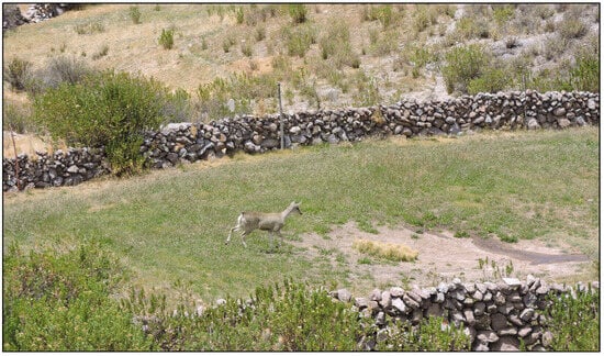 - Baldi, R.B.; Acebes, P.; Cuellar, E.; Funes, M.; Hoces, D.; Puig, S.; Franklin, W.L. Lama guanicoe. In The IUCN Red List of Threatened Species; International Union for Conservation of Nature and Natural Resources: Gland, Switzerland, 2016. [Google Scholar] [CrossRef]
