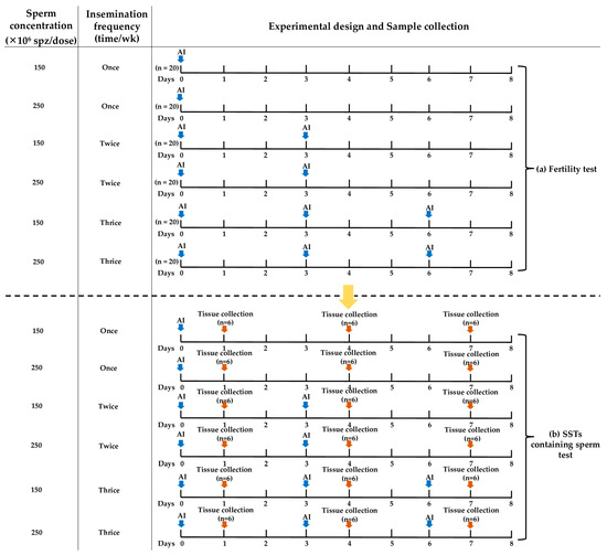 - Tabatabaei, S. The effect of spermatozoa number on fertility rate of chicken in artificial insemination programs. J. Anim. Vet. Adv. 2010, 9, 1717–1719. [Google Scholar] [CrossRef]