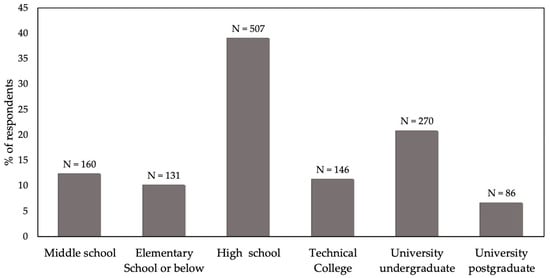 Highest education level in 1300 respondents in a survey of Chinese people’s attitudes to animal welfare.