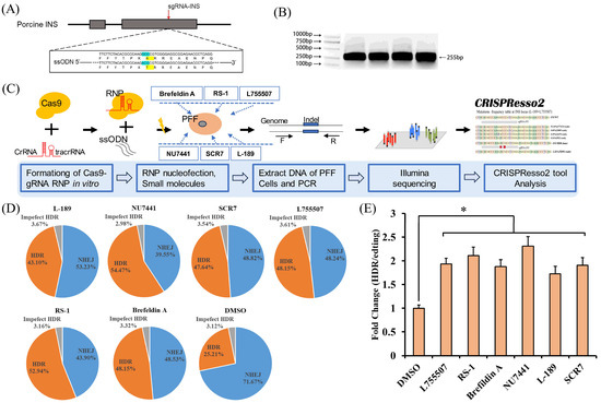 APA StyleZhao, Y., Li, X., Liu, C., Jiang, C., Guo, X., Xu, Q., Yin, Z., Liu, Z., & Mu, Y. (2024). Improving the Efficiency of CRISPR Ribonucleoprotein-Mediated Precise Gene Editing by Small Molecules in Porcine Fibroblasts. Animals, 14(5), 719. https://doi.org/10.3390/ani14050719