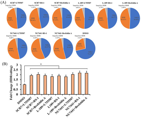 3.2. The Effect of Individual Small Molecules on the Efficiency of CRISPR RNP Mediated Precise Genome Editing