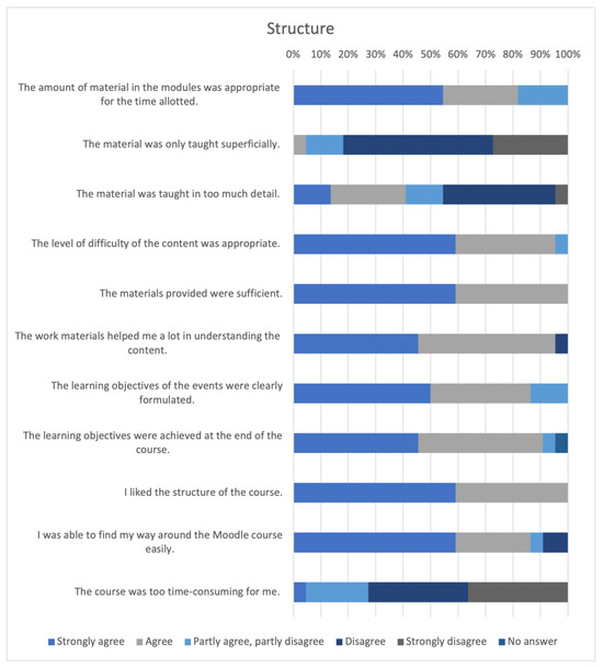 All the results of the section “structure” of the evaluation are displayed in Figure 8.