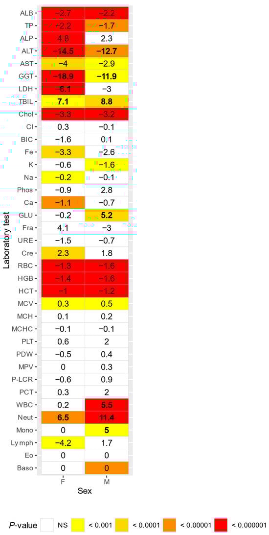 - McPherson, K.; Healy, M.J.; Flynn, F.V.; Piper, K.A.; Garcia-Webb, P. The effect of age, sex and other factors on blood chemistry in health. Clin. Chim. Acta. 1978, 84, 373–397. [Google Scholar] [CrossRef] [PubMed]